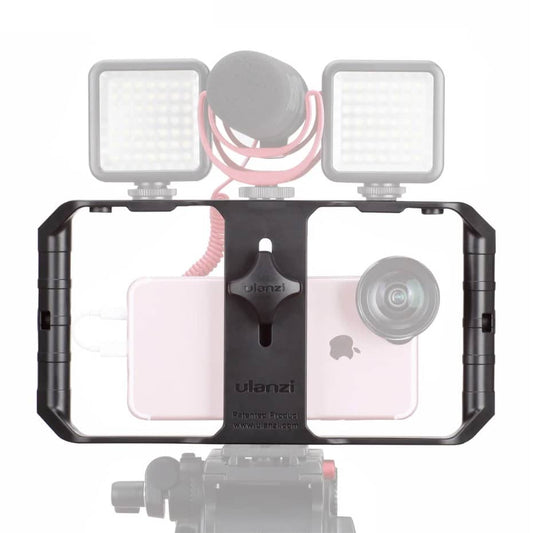 Pour réaliser des prises de vue stables avec votre smartphone, un strépied est idéal. Pour fixer votre smartphone, vous avez besoin d'un support de téléphone pour trépied. On l'appelle aussi fixation pour trépied. MOJOGEAR s'adresse principalement aux créateurs de contenu mobile et se spécialise dans les supports de téléphone pour trépieds. Plus loin dans cet article, nous détaillerons les critères à prendre en compte lors de l'achat d'un support de téléphone. Nous proposons plusieurs supports de téléphone pour trépieds dans notre gamme. Par exemple, le support de téléphone MOJOGEAR MOJOGEAR premium phone holder. Ce support est également doté d'une griffe porte-accessoires, ce qui vous permet d'y fixer des accessoires supplémentaires. Nous proposons également des supports de téléphone rotatifs à 360°, comme le Support de téléphone Ulanzi ST-17.