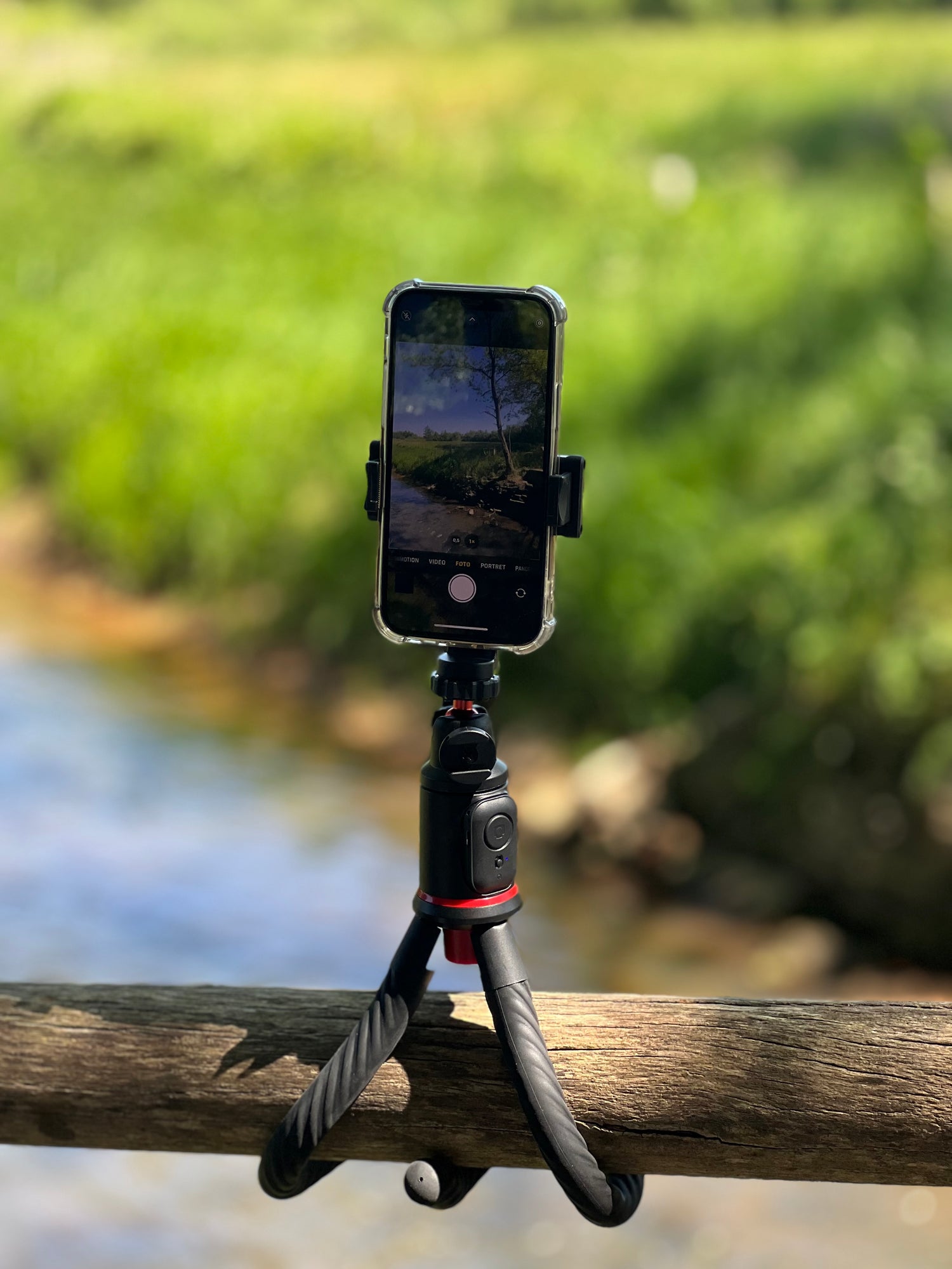 The phone holder is sturdy and suitable for all smartphones. Thanks to its light weight, it can easily be carried in a bag or jacket. Ideal for group photos, vlogs or just fun holiday shots.