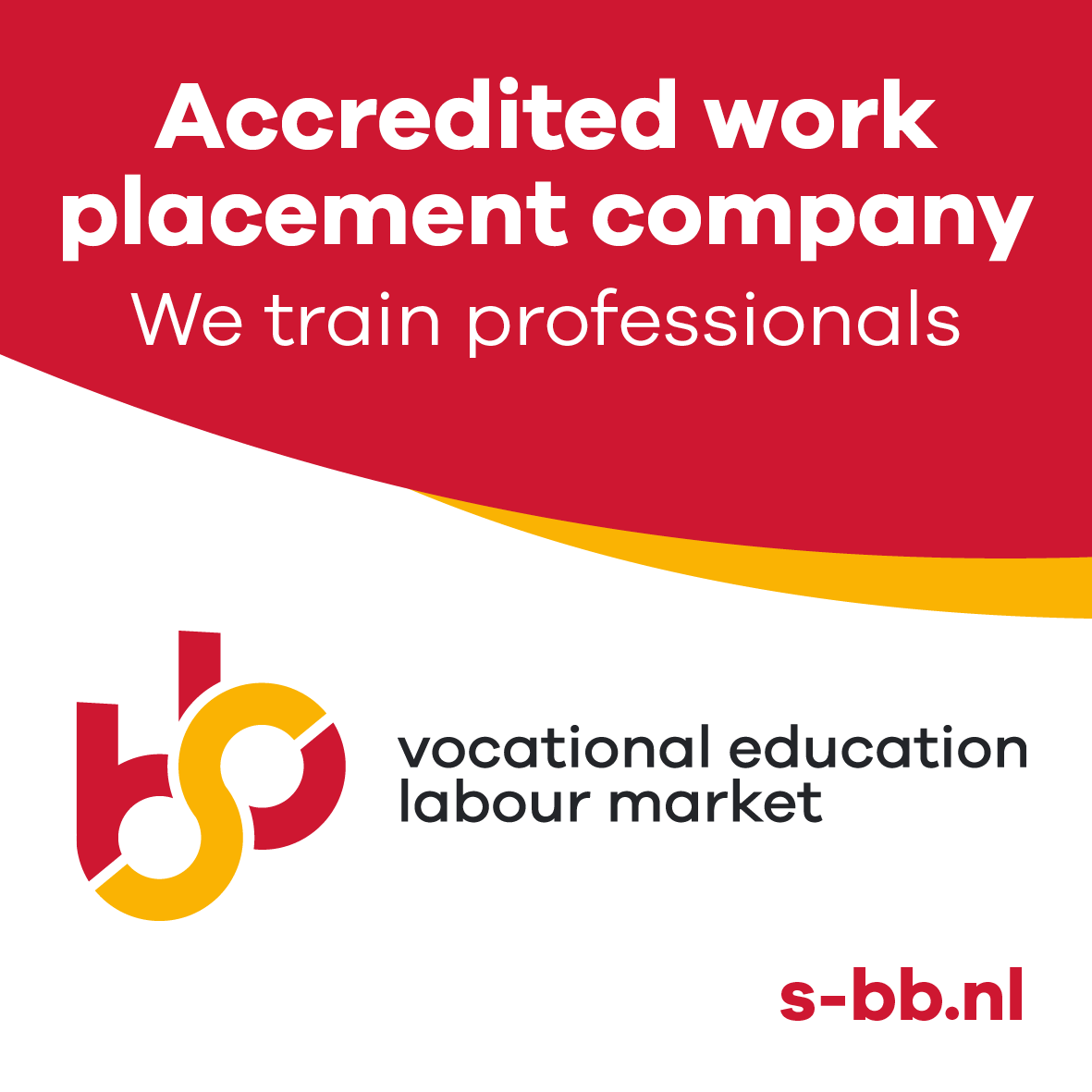 As an accredited training company, we guide MBO students during their internship or apprenticeship on the work floor. In this way, they learn the tricks of the trade for which they are following a training course. In return, we learn from their fresh perspective on our company and current knowledge and insights from their course.
