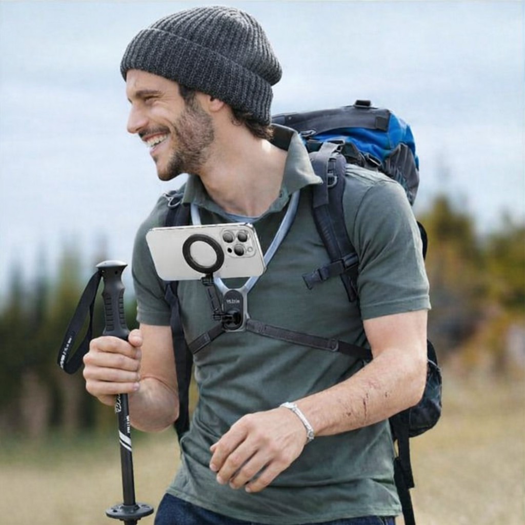 Grâce à ce support de cou MagSafe extra-large, filmez confortablement depuis votre point de vue. Idéal pour la randonnée, le vélo, le vlogging et la navigation en déplacement.