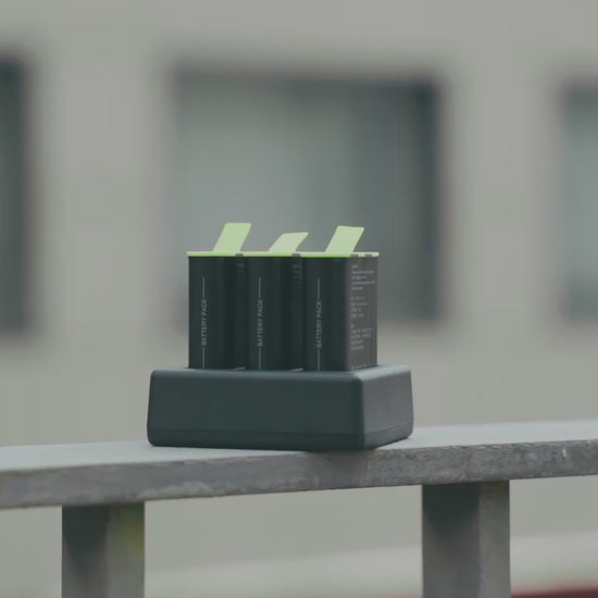 Le Telesin GP-BTR-903 est fourni avec deux batteries. Ajoutez-y la batterie standard de votre GoPro, et vous obtenez un total de trois batteries, que vous pouvez recharger simultanément en 2 heures avec ce chargeur. Ce dernier est fourni avec un câble USB-C. Vous pouvez l'utiliser pour le connecter à un adaptateur secteur USB (non inclus). Le chargeur fonctionne également avec une batterie externe. Pratique pour les déplacements !