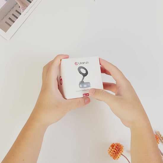Le Ulanzi SK-25 MagMount est un support à ventouse magnétique conçu pour fixer fermement et en toute sécurité votre smartphone sur des surfaces lisses. Ce support est idéal pour une utilisation en voiture, sur un bureau ou sur une fenêtre. Grâce à sa conception compatible MagSafe et à sa ventouse puissante, le SK-25 offre une base stable pour les appels mains libres, la navigation ou l'enregistrement de vidéos.